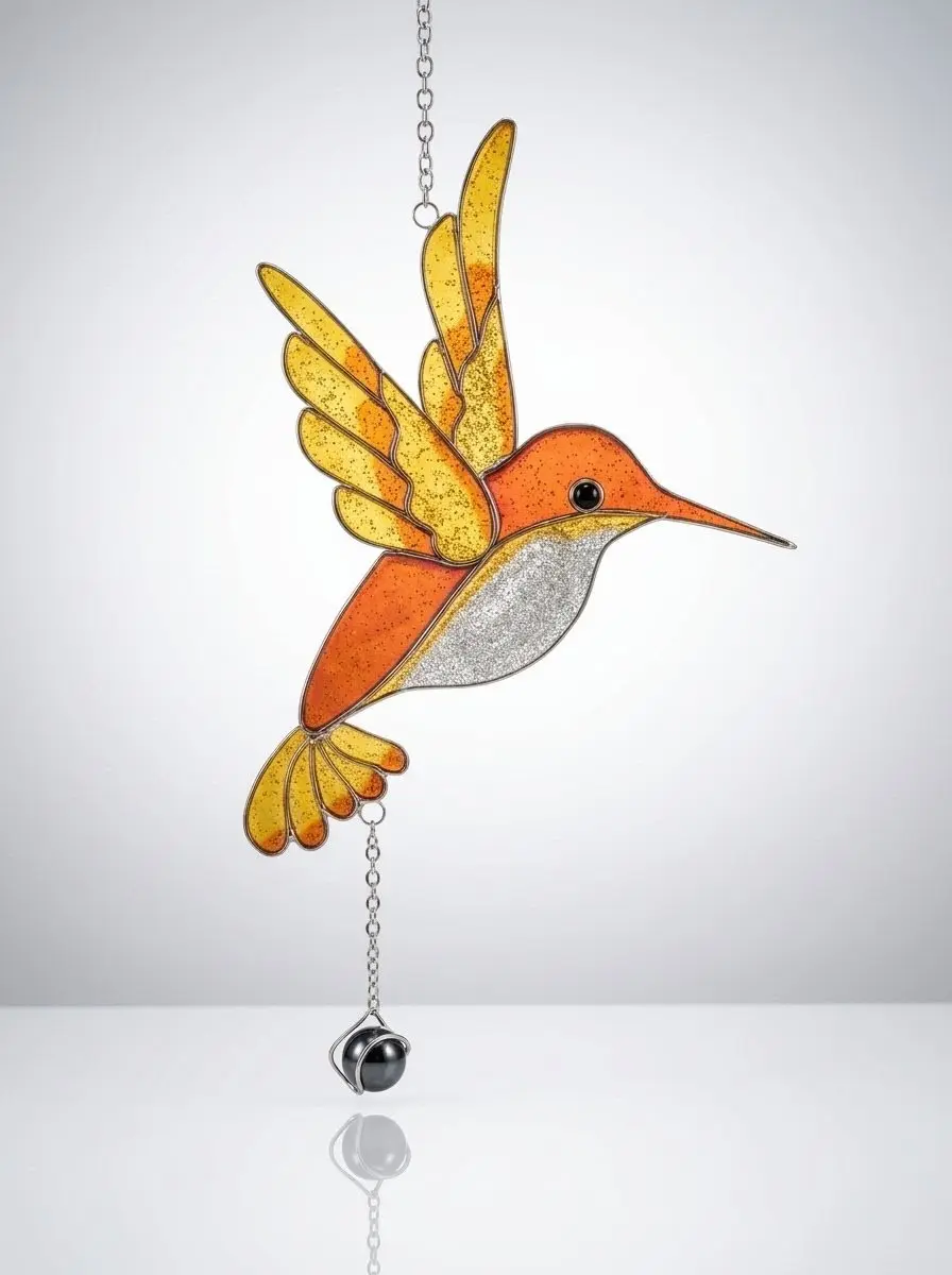 Schöne Dekoration für das Fenster und den Wohnraum. Kombination aus Acrylglas, Metall und Kette mit Haken.