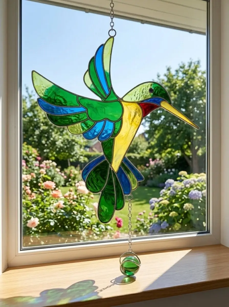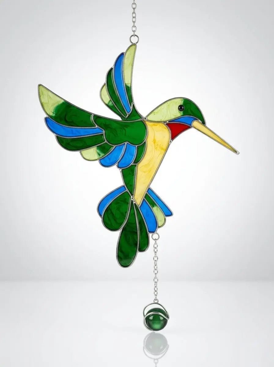 Schöne Dekoration für das Fenster und den Wohnraum. Kombination aus Acrylglas, Metall und Kette mit Haken.