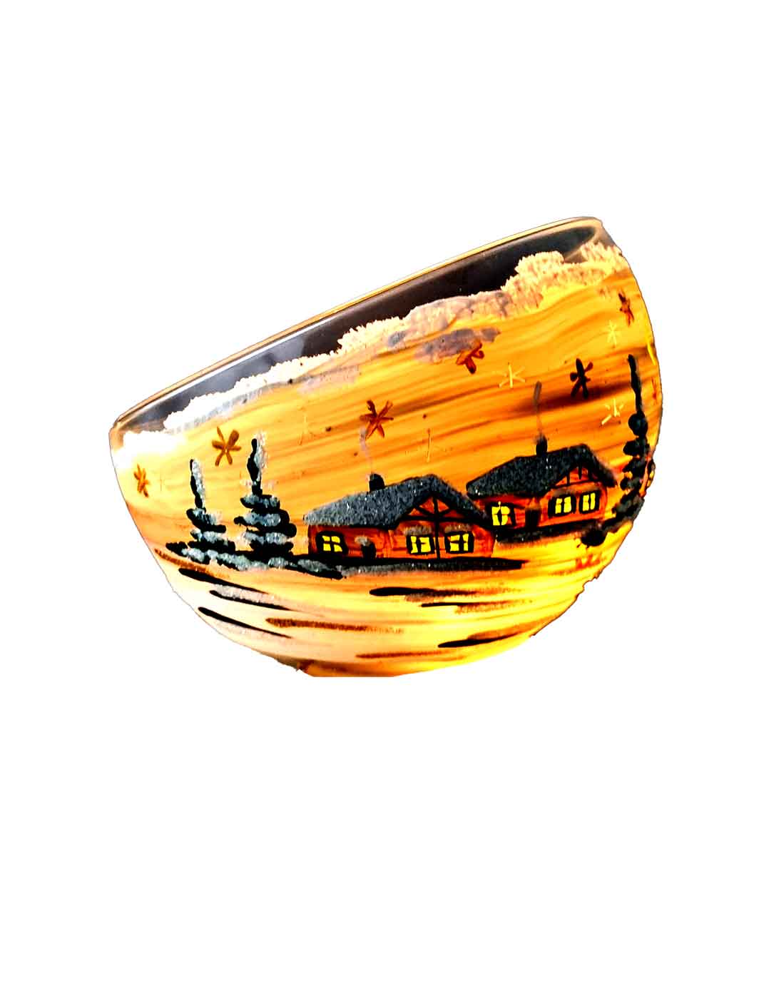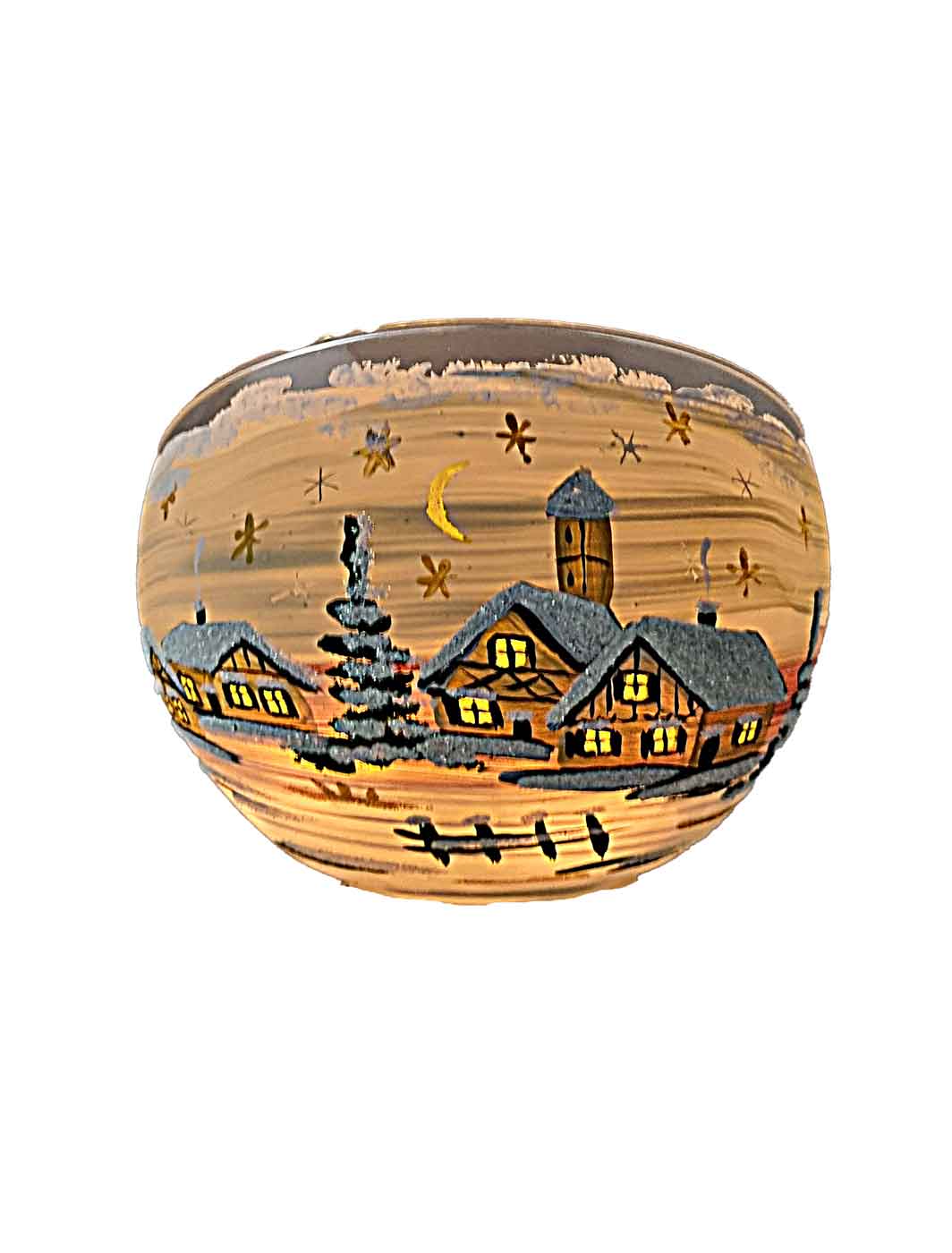 Bei Verwendung eines Teelichtes im Inneren, leuchtet das Wintermotiv im Dunkeln.