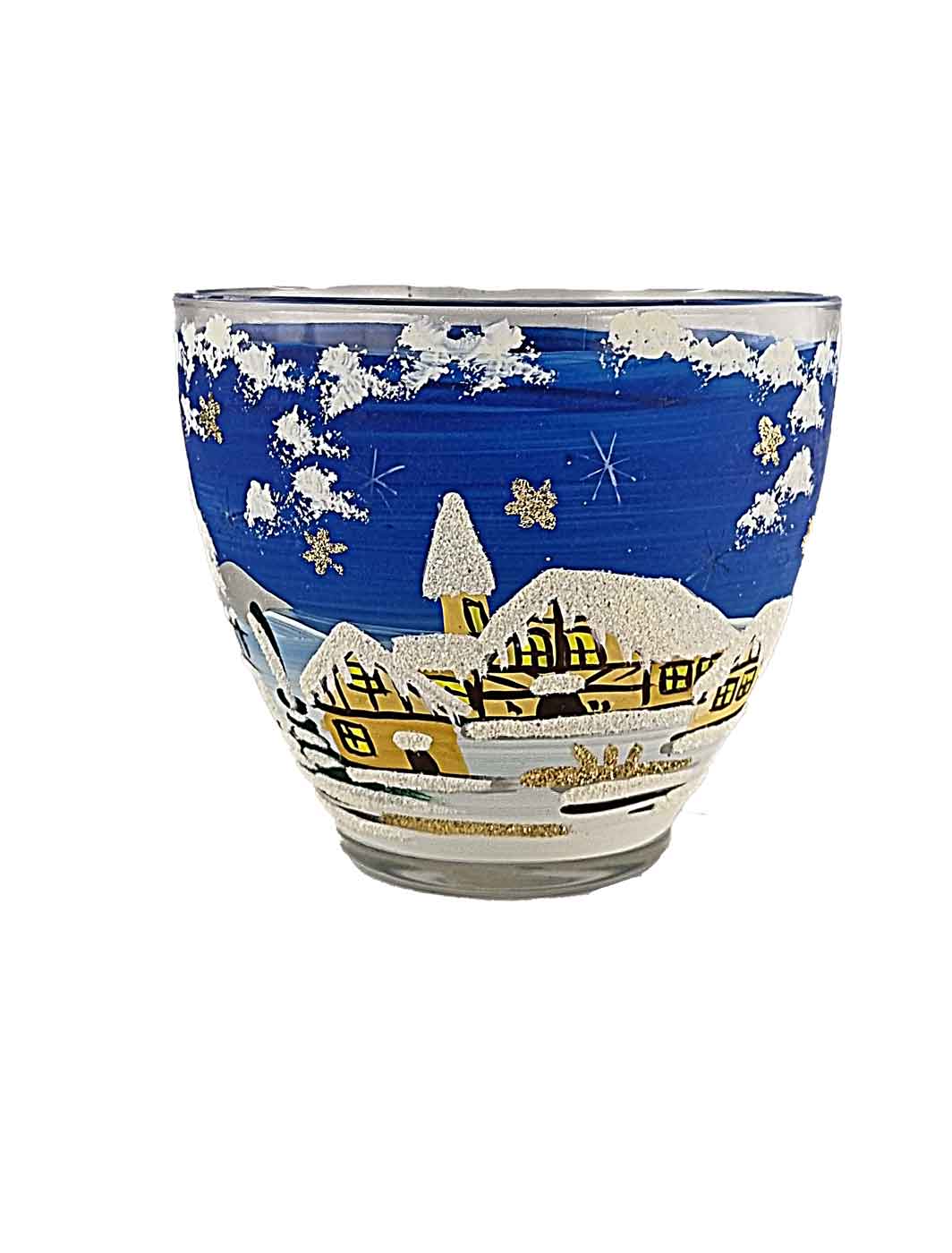 Bei Verwendung eines Teelichtes im Inneren, leuchtet das Wintermotiv im Dunkeln.